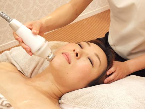 お顔は、キャビテーションで美白効果を、更に顔筋マッサージにて引き上げを行います。(パック付)