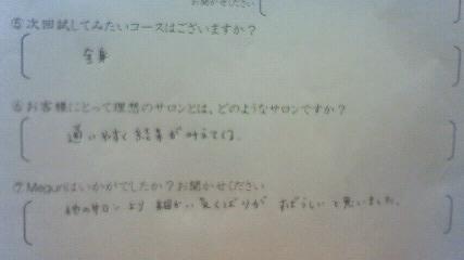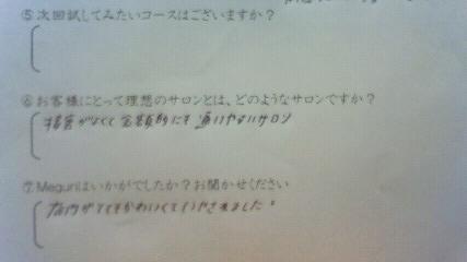 M様 本日はご来店誠にありがとうございました。 お褒めの言葉を頂き嬉しく思います。 お客様にはめぐりで寛いで頂けるように、満足して頂ける技術の提供と気づきを心がけております。 今後とも宜しくお願いいたします。